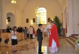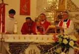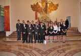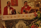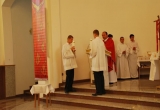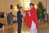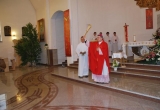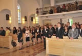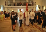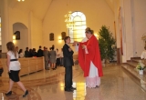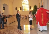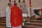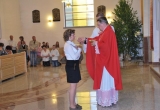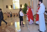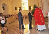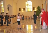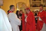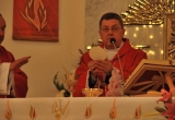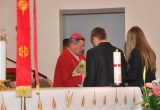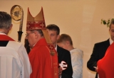 27 maja Mszę św. o godz. 18 koncelebrował ks. Bp Mariusz Leszczyński, który udzielił sakramentu bierzmowania zgromadzonej młodzieży. W swojej homilii ks. Biskup nawoływał do odważnego świadczenia o Panu Jezusie nie tylko od święta ale każdego dnia swojego życia. Na koniec uroczyswtości w podziękowaniu za udzielony sakrament przedstawiciele bierzmowanej młodzieży wręczyli biskupowi bukiet kwiatów. Poza młodymi ludźmi we Mszy św. wzięli też udział mieszkańcy parafii, zaproszeni goście oraz duszpasterze.